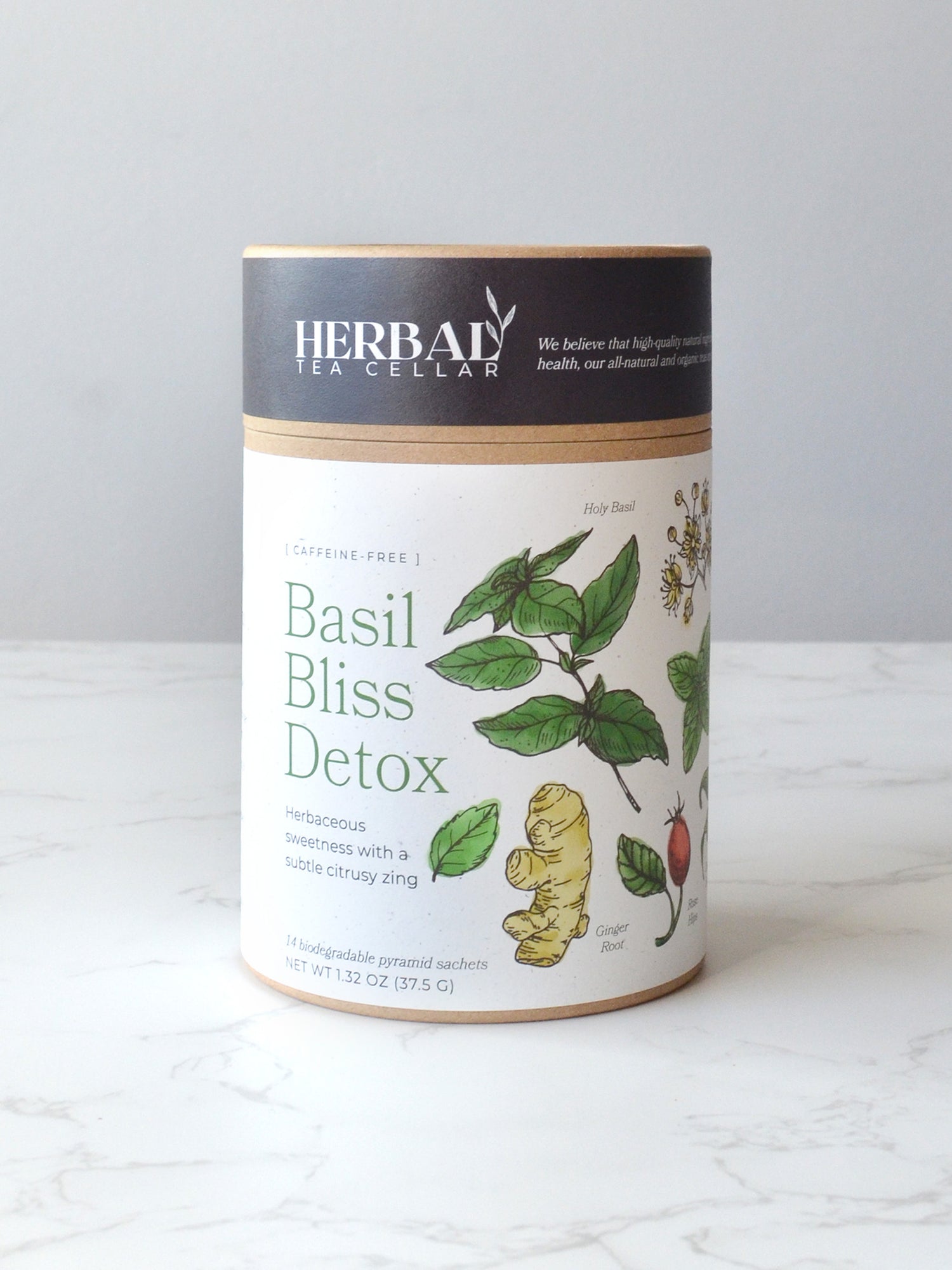 Basil Bliss Detox is a caffeine-free, all-organic herbal tea blend made with holy basil, spearmint, ginger, and supportive herbs to promote gentle daily cleansing and mindful wellness.