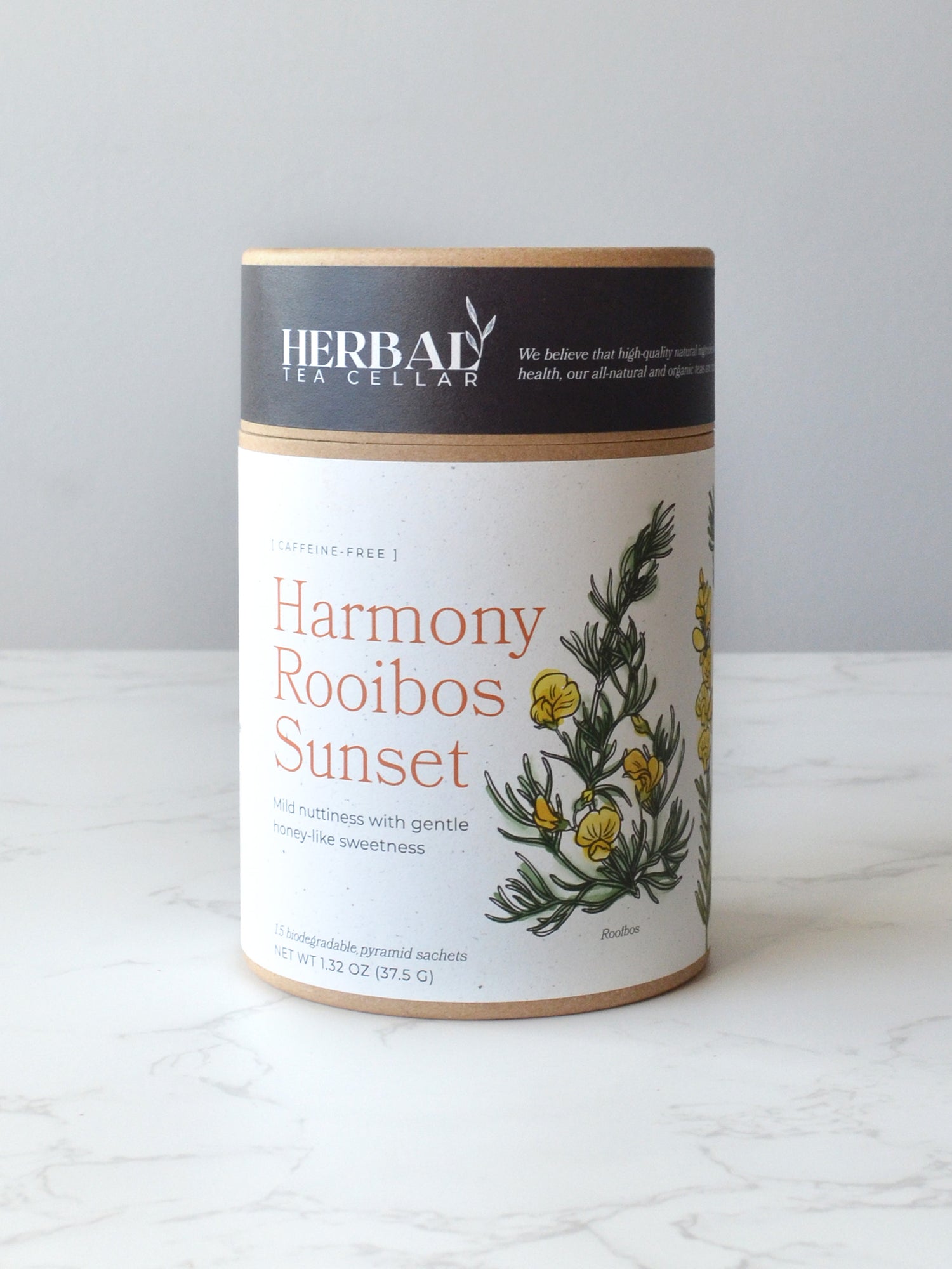 Harmony Rooibos Sunset is an all-organic, caffeine-free herbal tea blend of rooibos and honeybush. It’s a great alternative to traditional tea, perfect for daily wellness and mindful sipping.