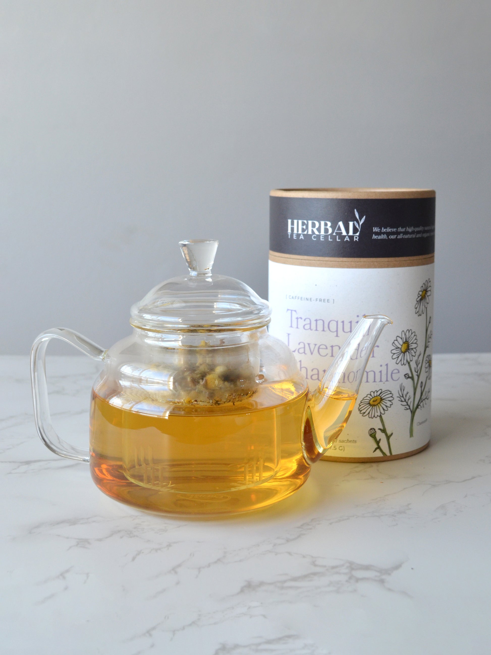 Our Tranquil Lavender Chamomile comes with 15 premium pyramid sachets, packaged in a reusable tea tube designed to preserve freshness and flavor. The pyramid shape allows the organic flowers to fully expand and infuse, delivering maximum calming benefits in every cup. The airtight tube protects your sachets from moisture, light, and air, ensuring every cup tastes as vibrant as the first. The elegant design also makes it perfect for gifting or displaying in your kitchen.
